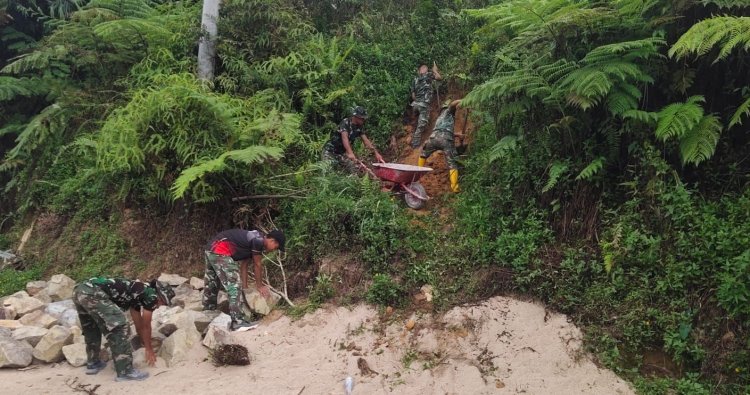 “Semangat gotong royong ini menjadi kunci utama percepatan pembangunan di tengah kendala cuaca, ” ucap Danramil